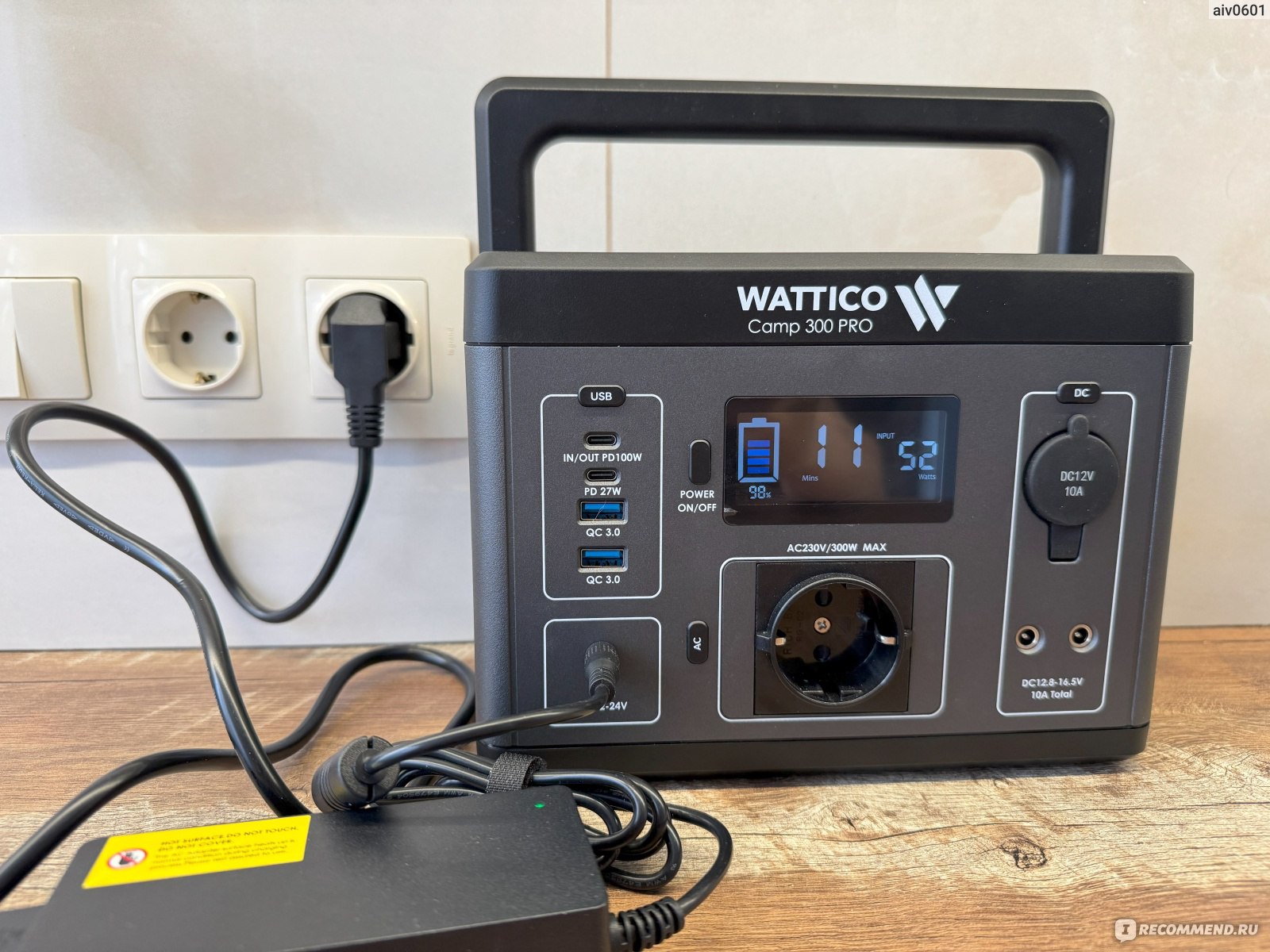 - WATTICO Camp 300 Pro — бюджетный и сверхлёгкий выбор для пеших походов. Вес всего 3,2 кг, мощность 300 Вт. Быстро заряжается от компактных солнечных панелей. Идеально подходит для коротких выездов, когда нужно заряжать телефоны, фонари и небольшую технику.